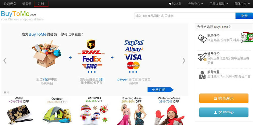 mail.buytome.com 专业服务海外华人的淘宝代购网站,一站式购买淘宝taobao、拍拍、当当等中国商品。服务费低,集中运输让运费省上加省,是新加坡代购,马来西亚代购及其他海外华人代购中国的首选代购网。